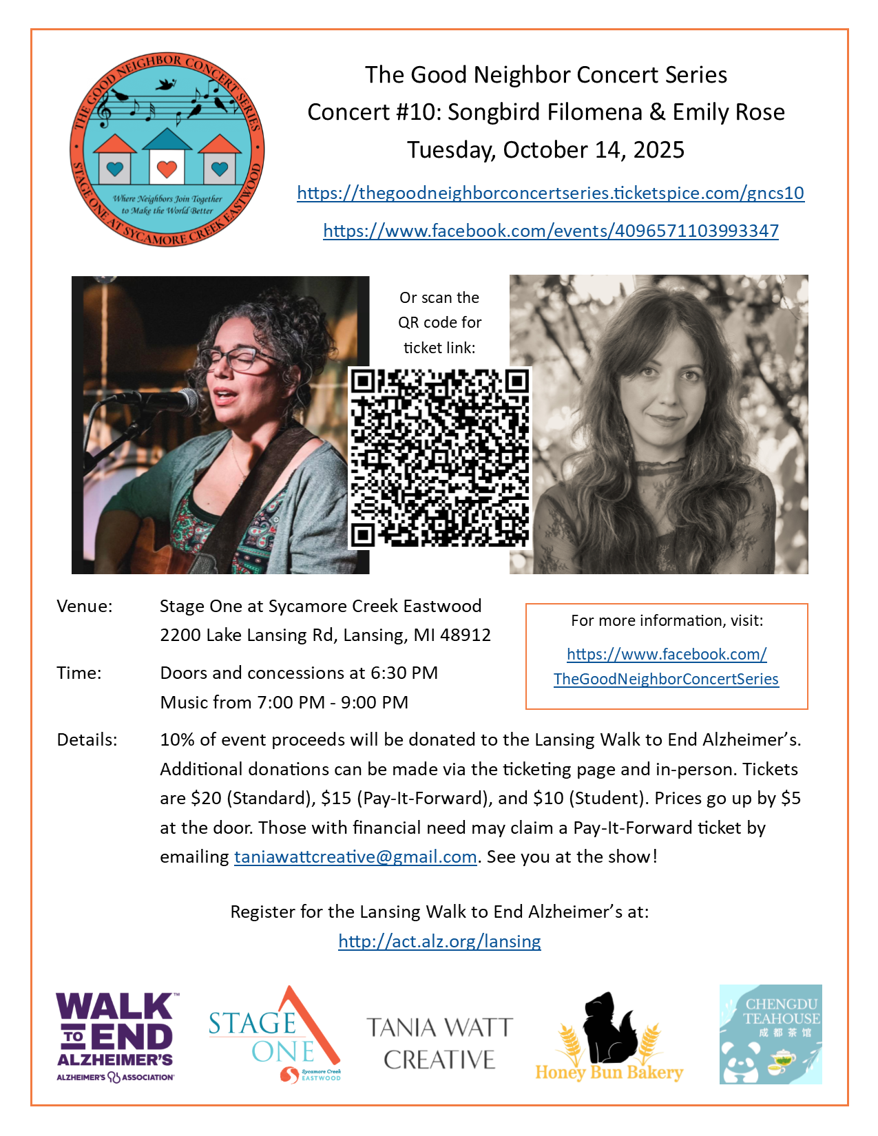 With Proceeds going to Ahzheimer’s Association. Guest opener Filomena.