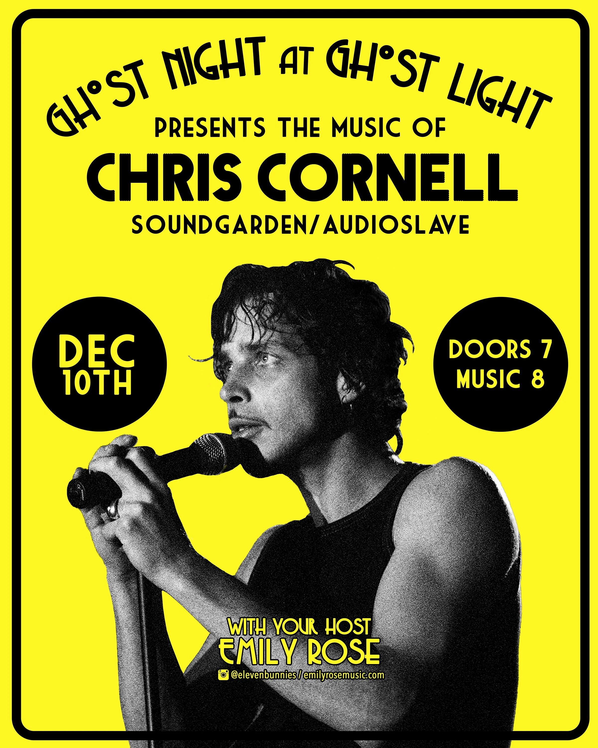 Ticket Link. Join us for another magical Ghost Night! A full band set of music featuring Chris Cornell songs, followed by a set of originals.